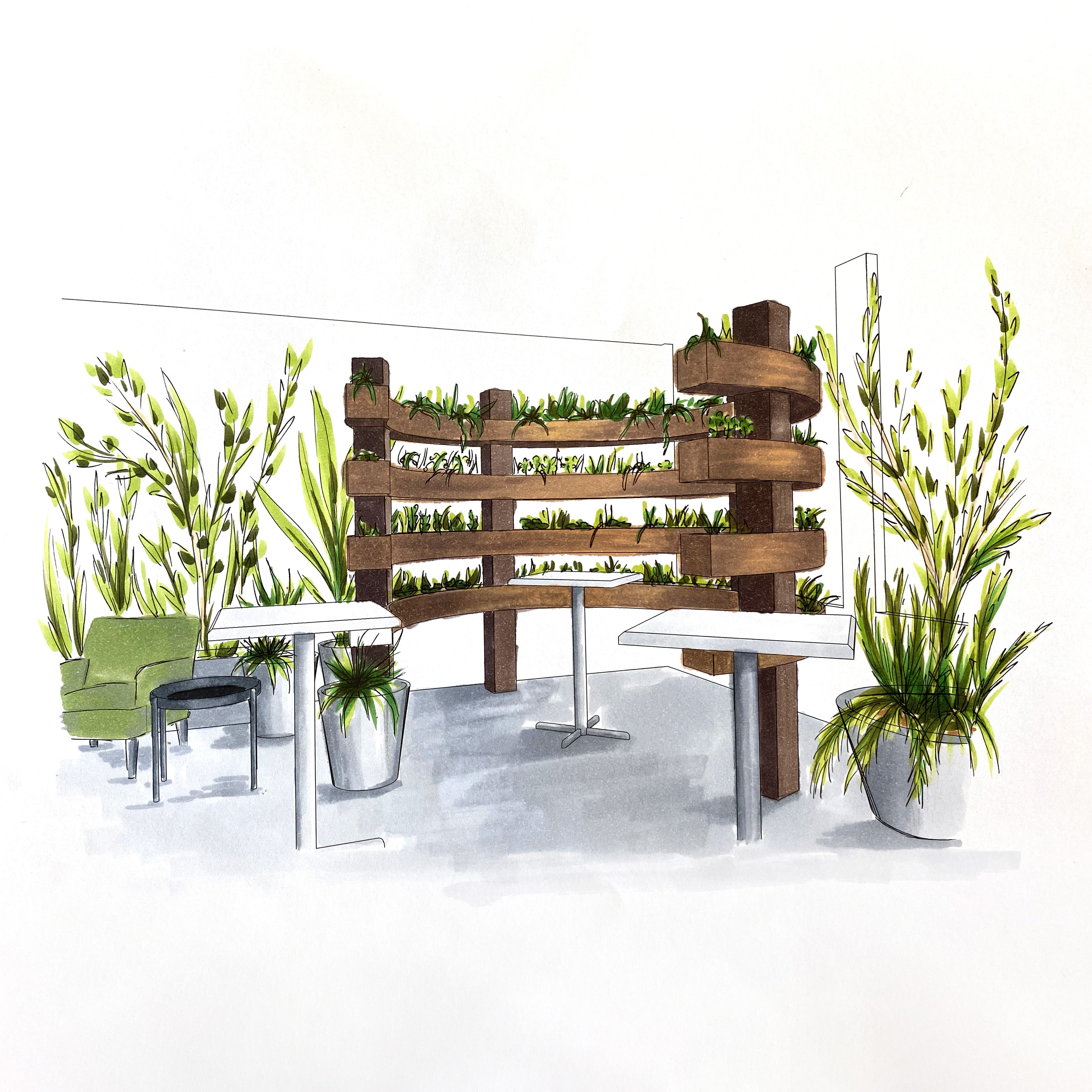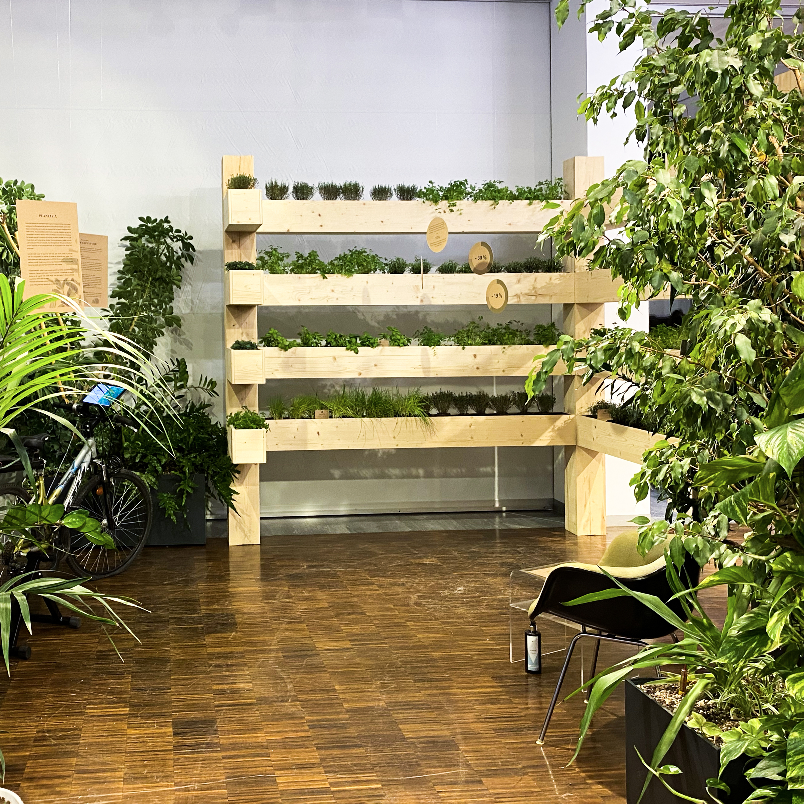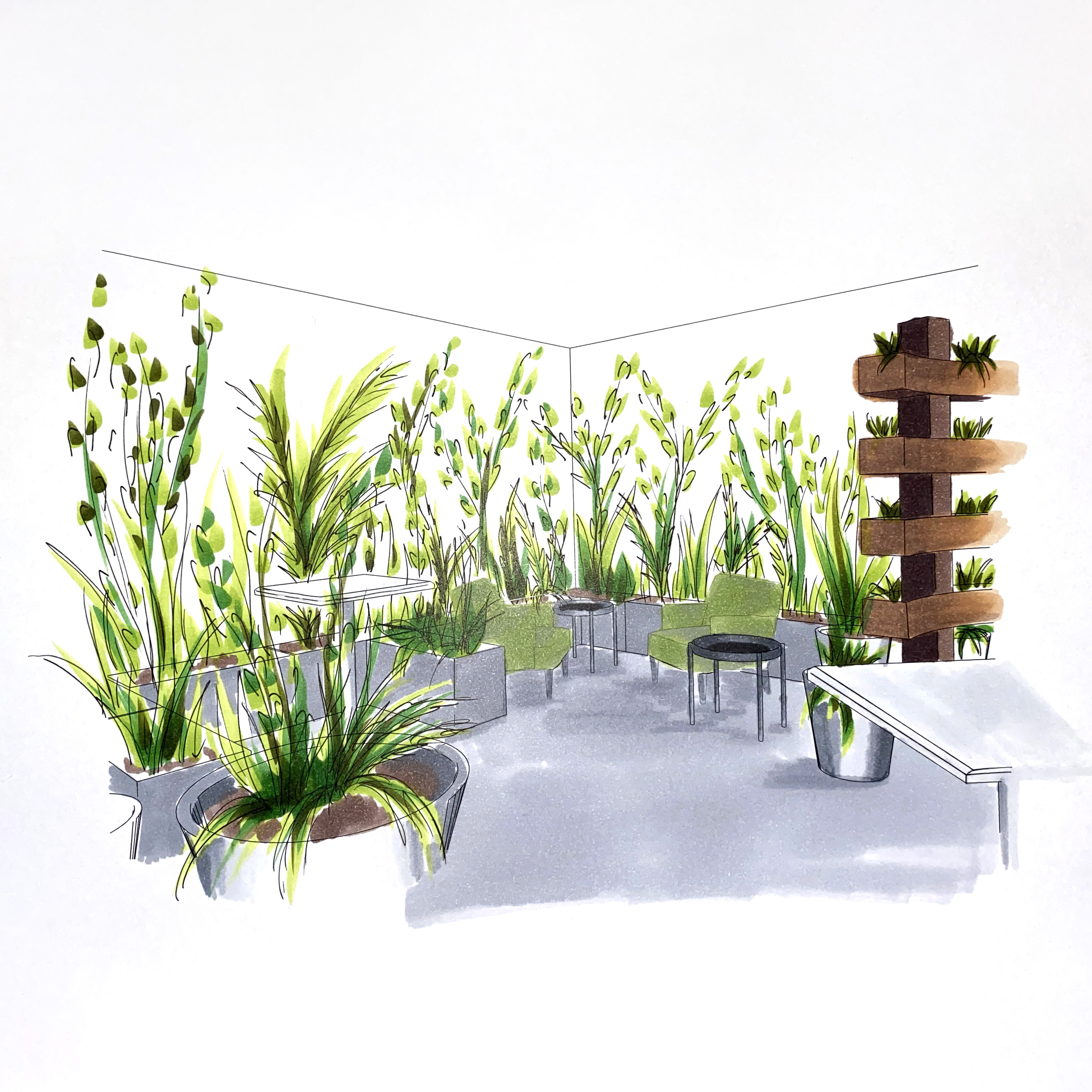 Suite à la période de confinement que nous avons expérimentée, nous avons redécouvert qu’être entouré par la nature, s’occuper de son jardin, ou travailler dans un univers libre et en plein air a toujours été un besoin fondamental de l’être humain. Nous souhaitons amener cet univers de végétation au sein de l’entreprise à travers un espace vert autosuffisant, modulable et écologique. Cet espace permet à l’employé de prendre sa pause, travailler ou s’occuper d’une plante qu’il a lui-même plantée.